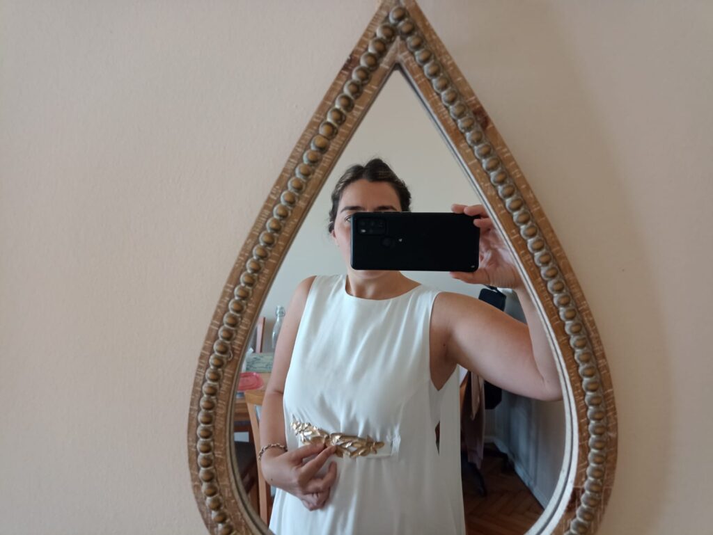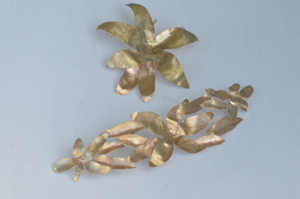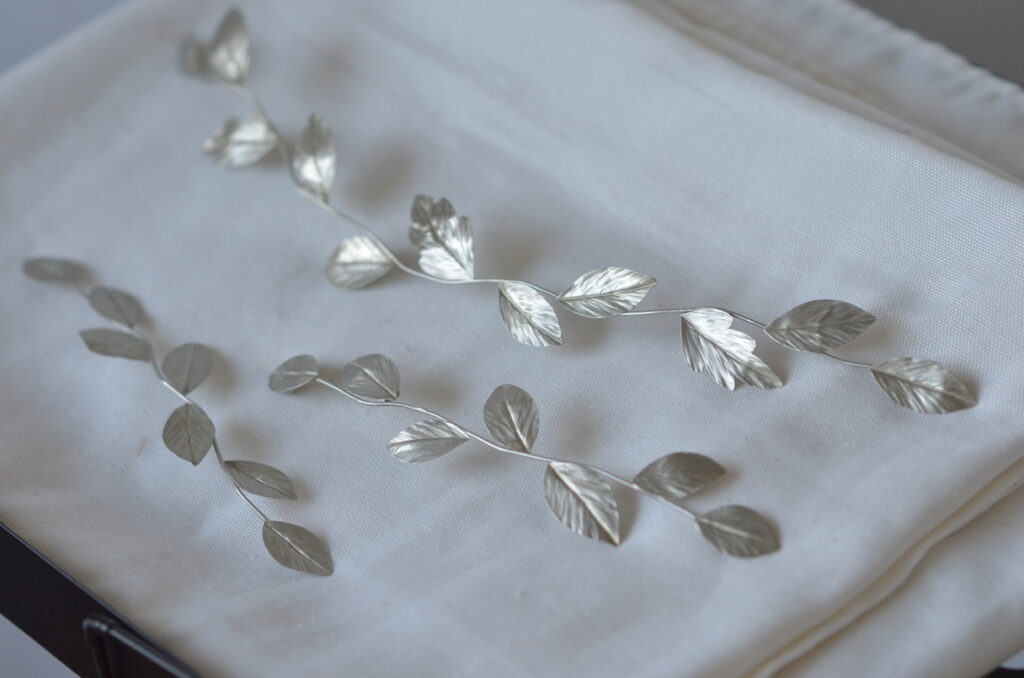 Cinturones para noviaPor Inés de Ezcurra / 23/09/2021 Cinturones, hebillas, apliques. ¡Cintos de muchos tipos! Raíces Para la producción junto a los vestidos de Flor Pierro, probamos dos propuestas de cinturones. Vicky Aplique tipo griego para vicky con tocado haciendo juego. Sol de Abril El sol de la bandera….¡Argentina y Uruguaya!ambas banderas me representan porque mis padres vivieron en ambos países y mi mamá es Uruguay, Hebilla simple de calado de hojas. ¡La temática en este estilismo es puro hojas!¡Todo encaja perfecto!Textura del vestido, hojas de cuero de tocado y calado de hojas. Si no te lo decía no te dabas cuenta. Hojas de Olivos para Mica Mica combinó, tocado, aplques en las mangas y aplique en la cintura. Ginkgos para Ceci Alpaca bañado en plata Flores y hojas de bronce Hebilla y tocado haciendo juego. Flores y hojas con formas bien orgánicas y texturas. Polilla Love Hebilla de bronce fundido. Dos polillas que se encuentran. Apliques de sinamay Piezas de fibras naturales pueden ser teñidas y se aplican una por una al vestido. Otros materiales Piezas de asta, cuero y otros materiales.